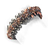 This colorway shifts from denim blue to copper. The beads include two colors of Lily Petals Czech beads with soft metallic and halo finishes, and brilliant copper toned Czech 6/0s. Peyote sleeves, made with a mix of 10/0 Miyuki Duracoat Delicas in a dark copper and cornflower blue 11/0 Miyuki Seed bead cover the magnetic clasp and give the piece its final finish.