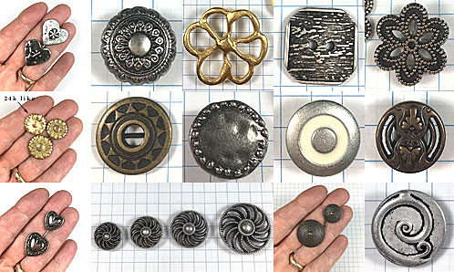 I am always tempted to hoard the very best ones... but which ones? I choose these buttons very carefully, looking for great designs, diverse metal finishes and sizes...